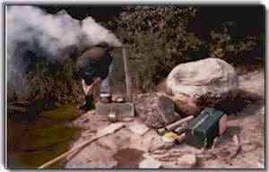 wood than an open fire, and doesn't scar the site like a fire--pit